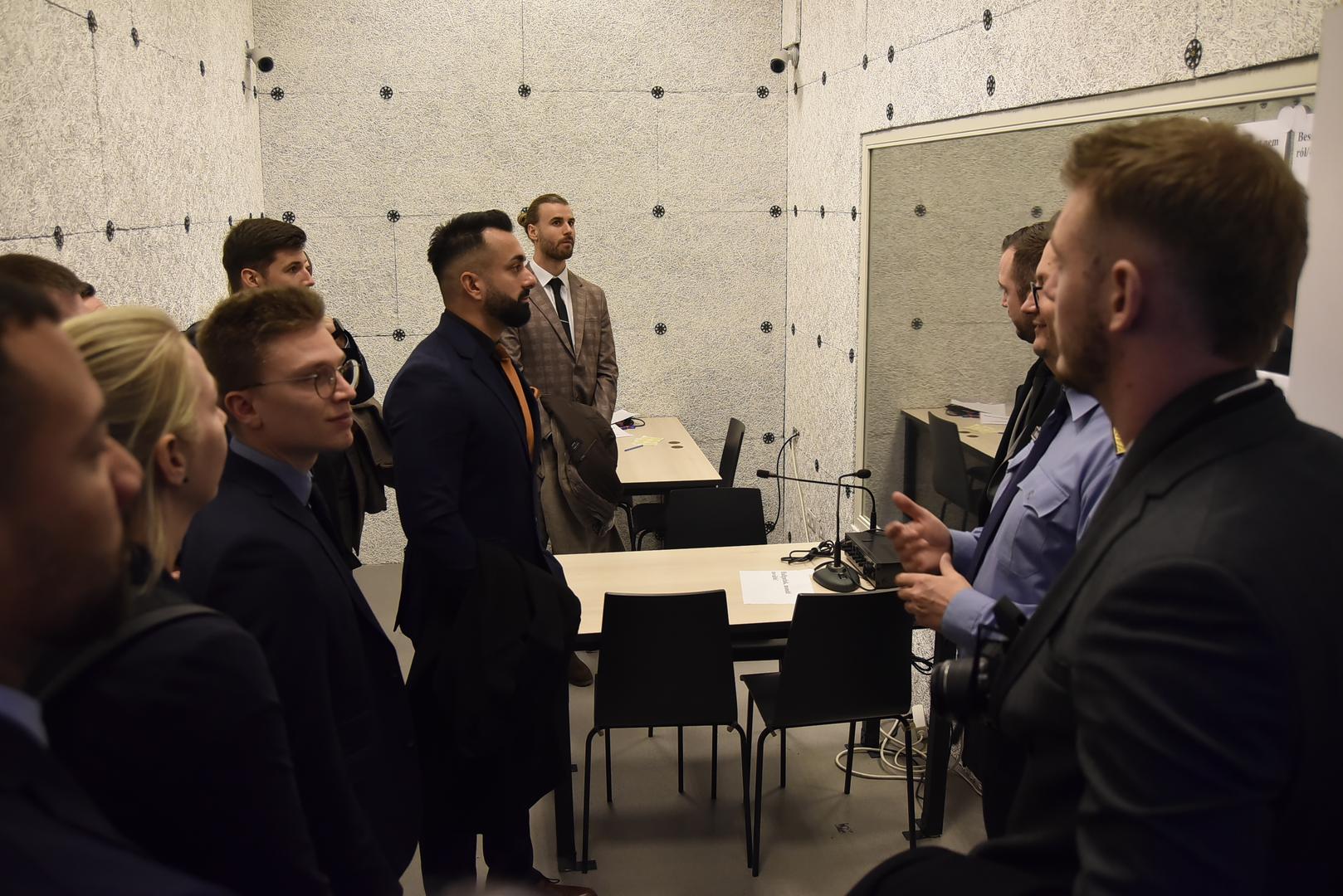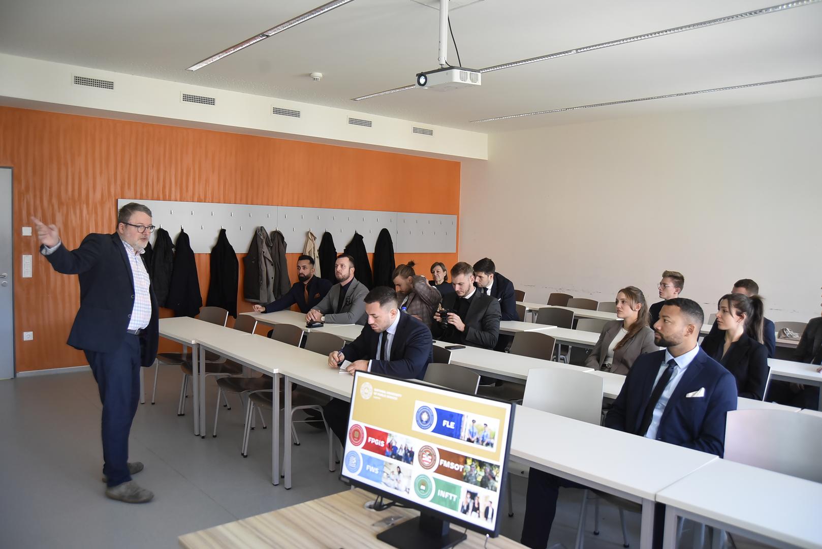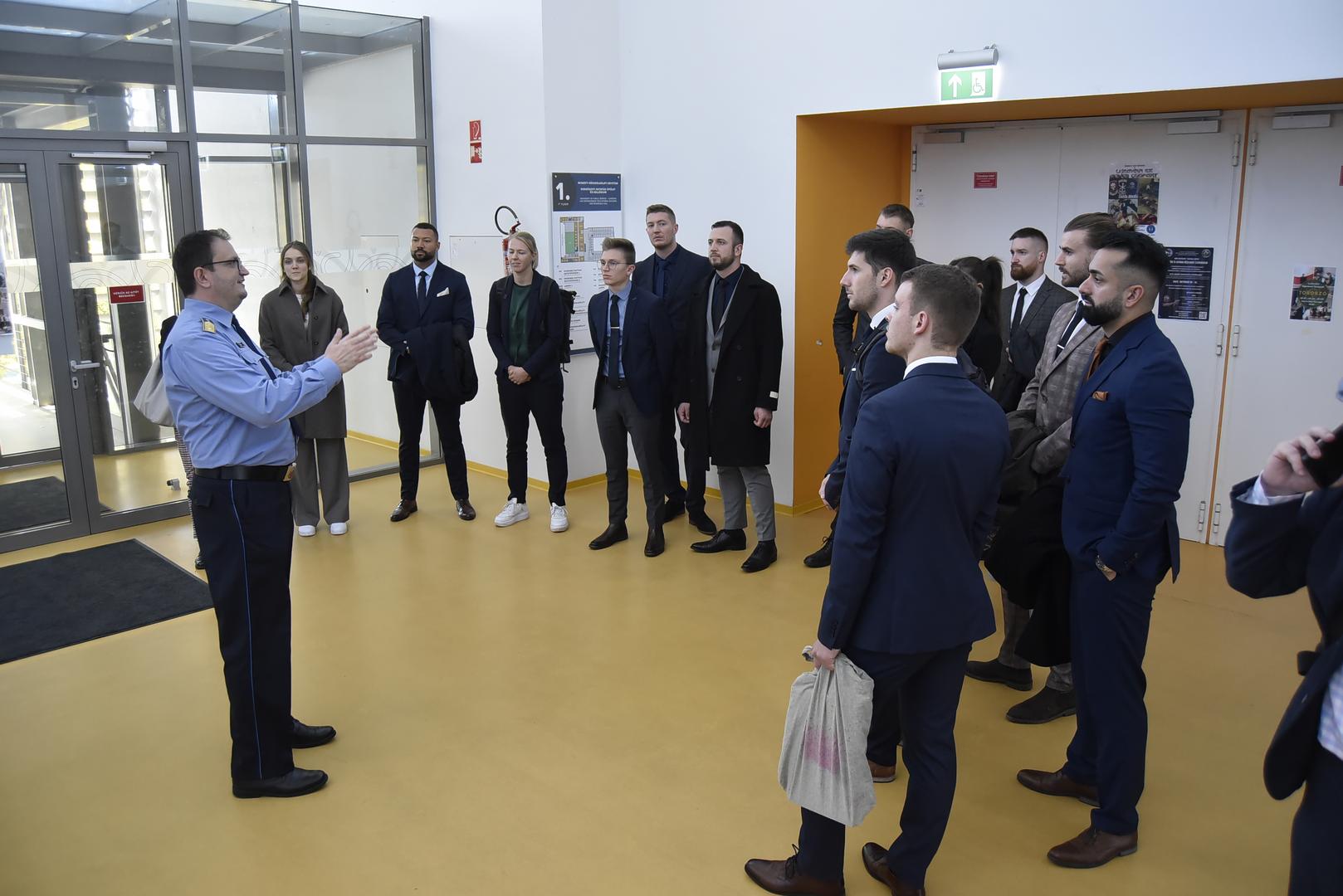 As part of the program, the students took a campus tour where they were introduced to the modern infrastructure of the Faculty and the implementation of an experience-based educational model. The delegation gained insights into the academic use of various facilities, including the interrogation room, the tactical training house, and the forensic laboratories. These facilities provide Hungarian law enforcement students the opportunity to enhance their theoretical knowledge through realistic practical scenarios.