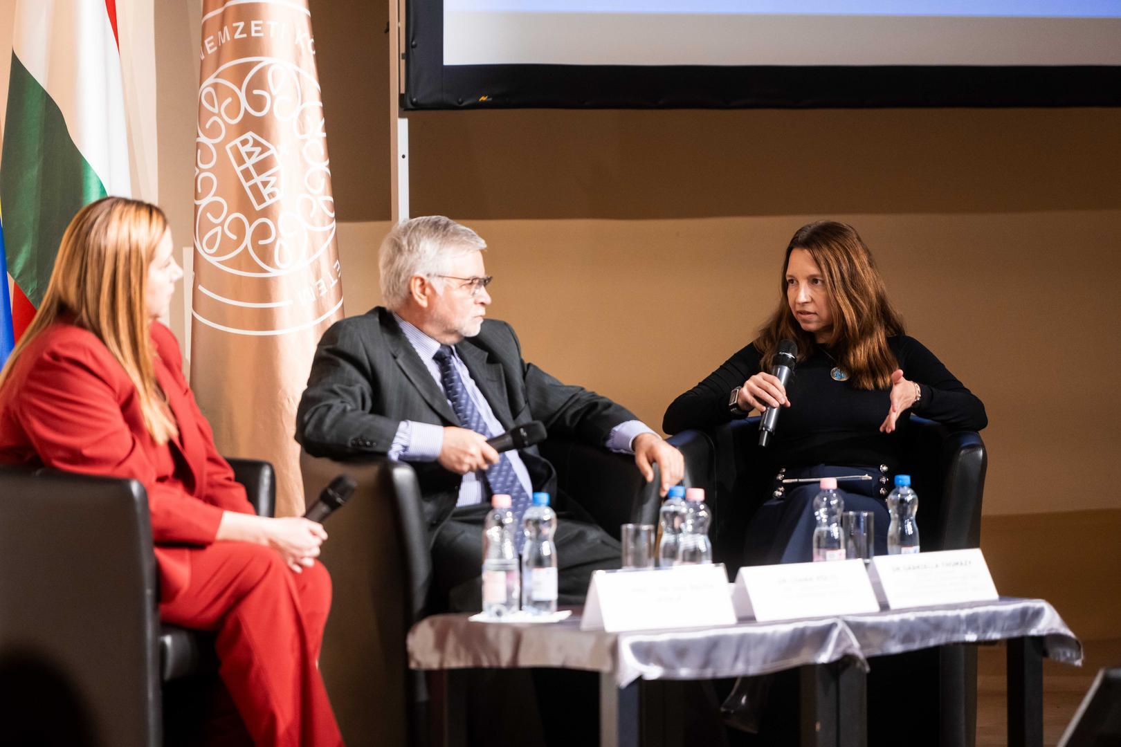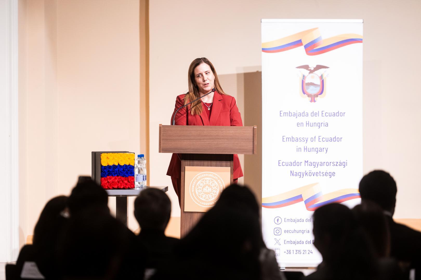 In her presentation, Ambassador Cynthia Mayer Zavala reviewed the past, present, and future opportunities of diplomatic relations between Ecuador and Hungary. She recalled that the diplomatic relationship between the two countries became official through an exchange of notes in Washington on January 3, 1946. As she explained, Ecuador at that time sought to strengthen its sovereignty, while Hungary focused on diversifying its system of international alliances. The Ambassador emphasized that the main pillars of her country’s foreign policy include sovereignty, international cooperation, peace and security, sustainable development, human rights, and the promotion of trade and investment. In her presentation, she spoke in detail about possible areas of cooperation between Ecuador and Hungary, including agricultural innovation, energy, water management, defense and international security, as well as education and scientific research.
