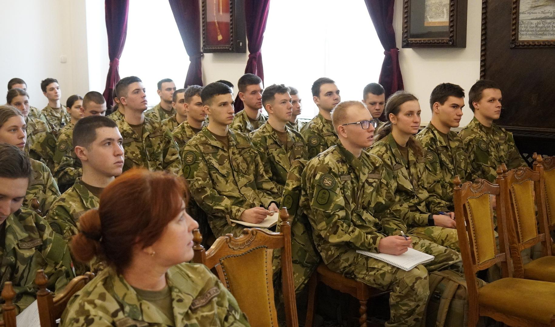 The nearly one-hour forum was attended by more than 40 officer cadets. The discussion was moderated by Lieutenant Colonel Ferenc Petruska, Vice Dean for International Affairs of the Faculty of Military Science and Officer Training, and Colonel Zsolt Kálóczi, representative of the Institute of Military Aviation.